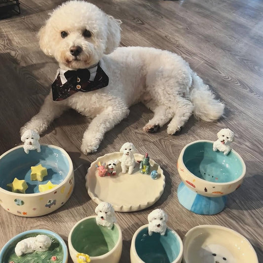 Personalized Handmade Ceramic Pet Food Bowl Food&Water Set